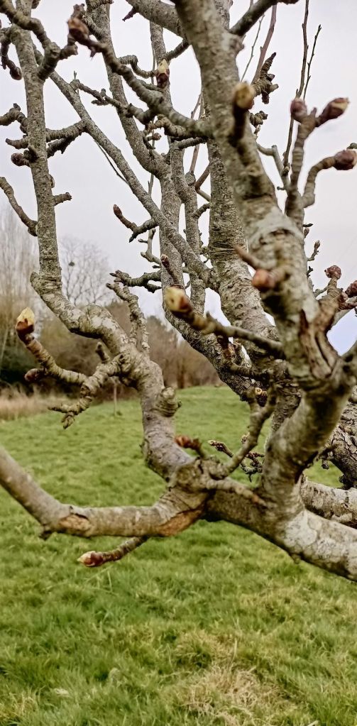 Sous un ciel de fin d’hiver, les branches de cet arbre, encore dépouillées, portent les premiers bourgeons d’une vie naissante. Ces délicats points de croissance symbolisent le retour de la vigueur après les mois froids et la promesse de jours plus lumineux.
