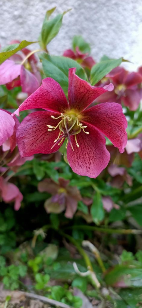 Cette superbe rose de noël, entourée de feuilles vertes luxuriantes et d’autres fleurs similaires, incarne l’élégance et la poésie du monde végétal. Avec ses pétales délicats et ses étamines jaunes lumineuses, elle attire non seulement l’attention visuelle, mais célèbre également la beauté simple et authentique de la nature.